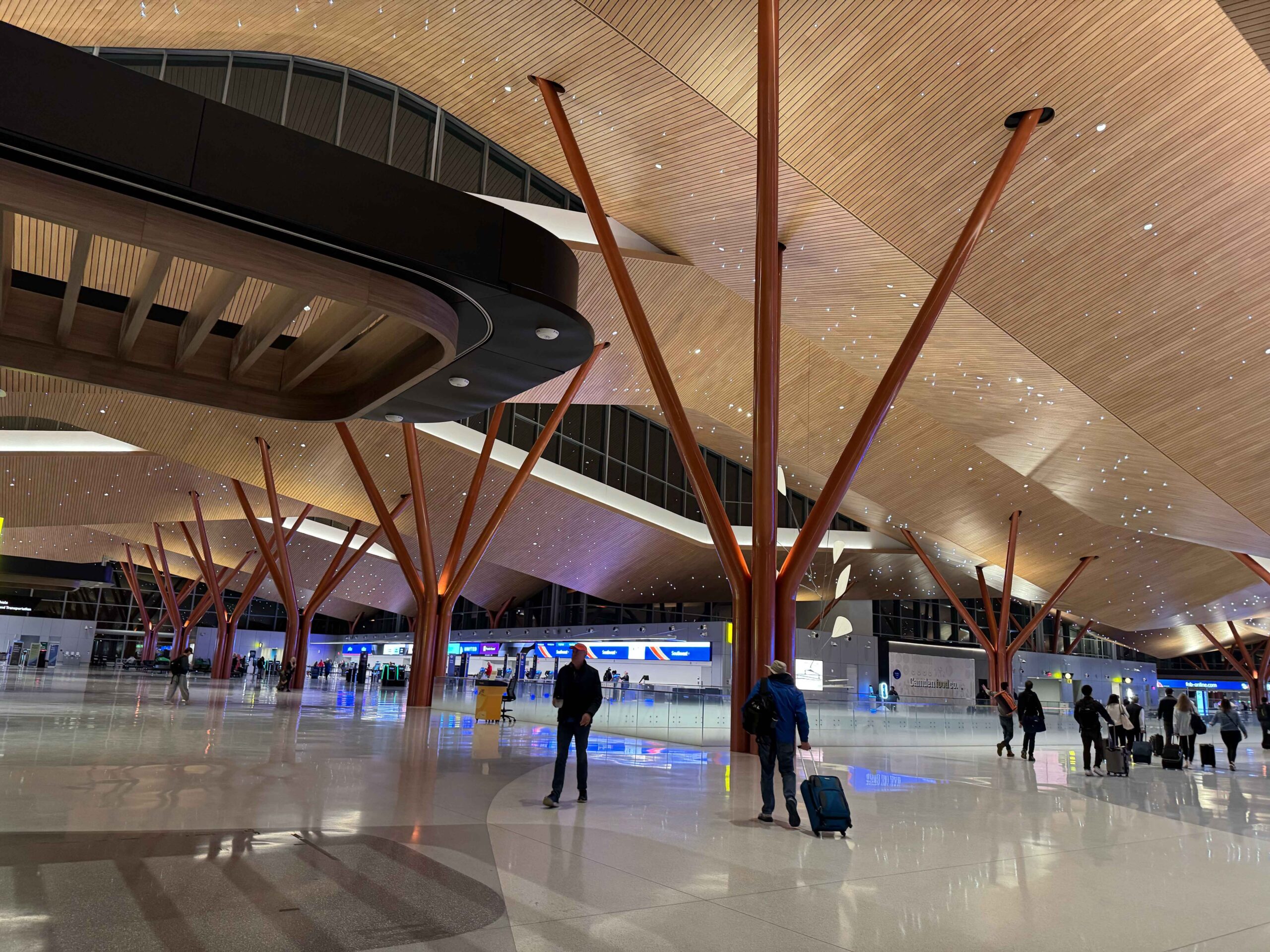 We’re so used to the old routine: park in extended, take the escalator, ride the tram, hit the old terminal. Not anymore. Now, shuttle buses sweep you right to the front of the new terminal. You just walk right in.